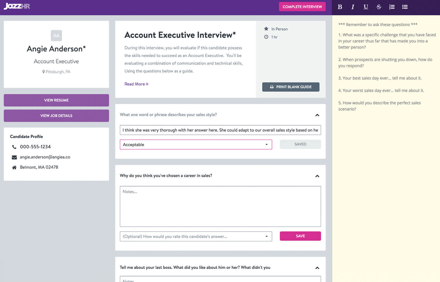 Collaborative Hiring: Keep the entire hiring team involved and engaged by utilizing JazzHR’s real-time feedback, scheduling autonomy, and task management features.