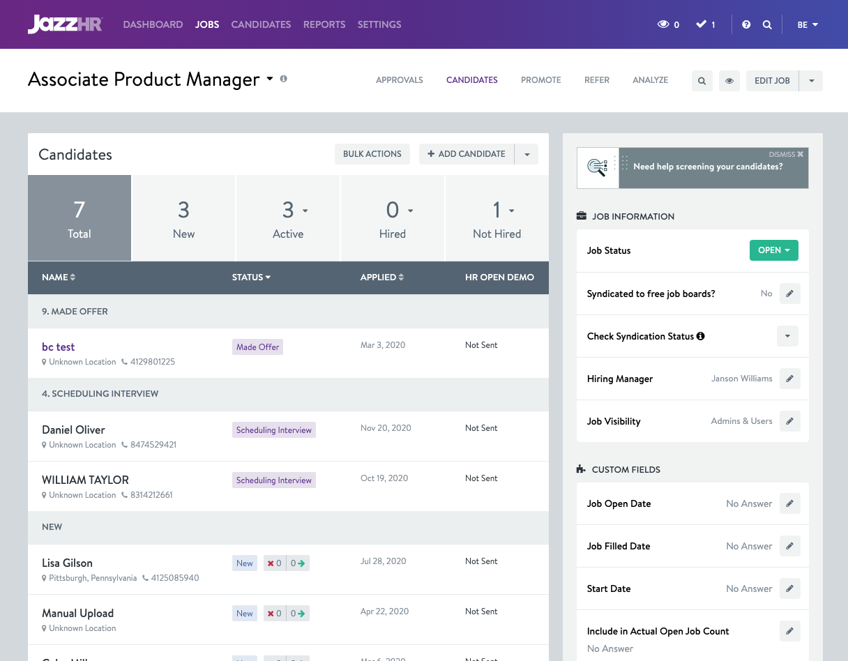 Robust Candidate Pool: JazzHR delivers more candidates through its “post once, publish everywhere” approach. This prevents duplicating efforts and increases awareness and reach.